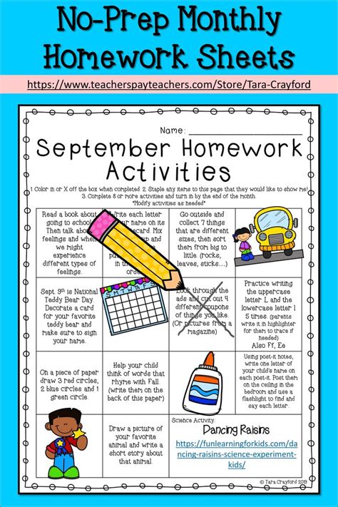 Download kindergarten monthly homework activities Library Binding BookBoon